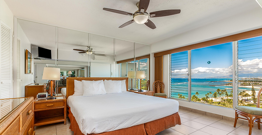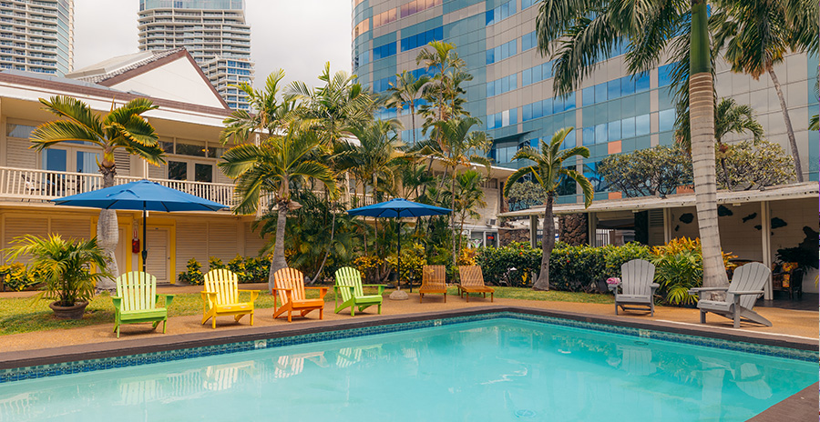 ワイキキの中心にありながら、喧騒を忘れる落ち着いた雰囲気の隠れ家的ホテル。レストランやショッピングスポットへのアクセスもよく、簡易キッチン付きのタイプのお部屋もあります。