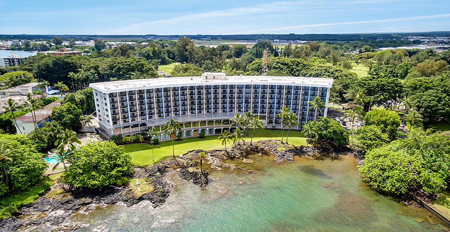 ヒロ湾沿いの落ち着いたオーシャンフロントホテル。火山観光の拠点に便利なロケーションで、ホテルルームのほか、リビングルームと寝室が分かれた1ベッドルームも選べます。