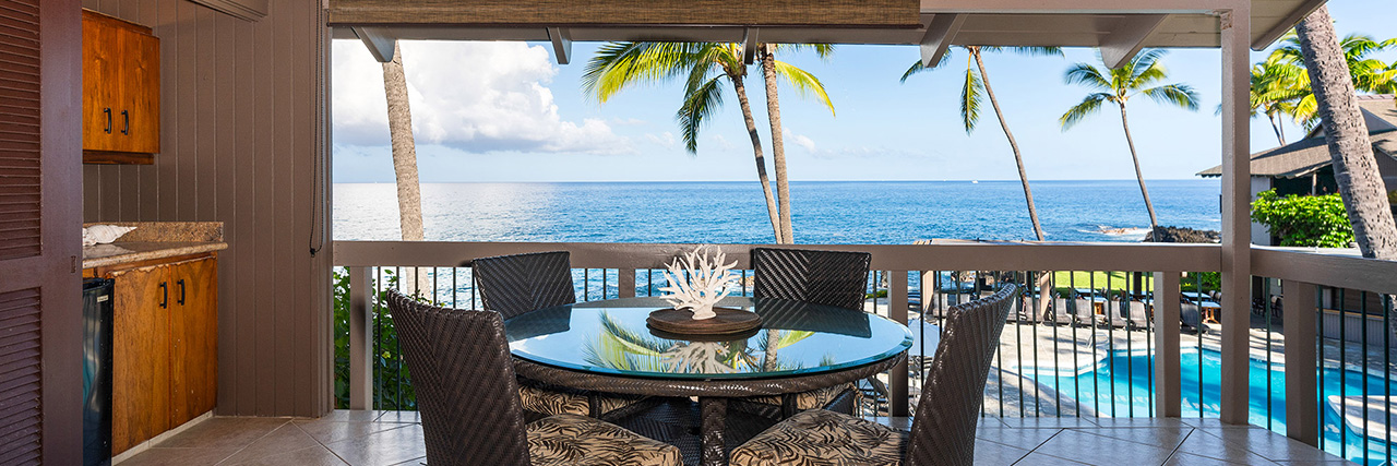 ワイコロアのサンセットが美しいオーシャンフロントのヴィラ&タウンホーム。キッチン付きの広々とした空間の2ベッドルームまたは3ベッドルームから選べます。
