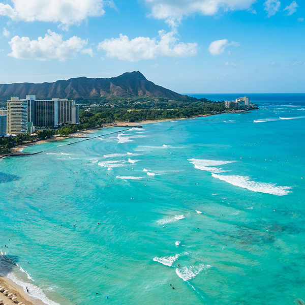 ワイキキは、初めてのハワイにもリピーターにも人気の王道エリア。ビーチ、買い物、グルメ、観光スポットがコンパクトに集まり、短期~長期までさまざまな滞在に向いています。
