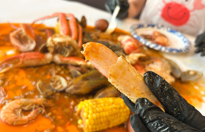 好みのシーフードコンボ(複数のシーフードが組み合わされたセット)を選び、さらに辛さを調整できる旨味たっぷりのソースをチョイスできるスタイルが人気の理由。