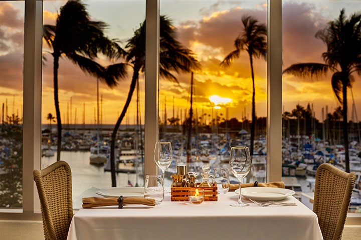 「ワンハンドレッド セイルズ レストラン&バー」は、大きな窓から美しいハーバービューやアラモアナに沈むサンセットが望め、ハワイに来たらそれだけでも行く価値大です。お料理は、地元の新鮮な食材をふんだんに使用した、個性的で想像力溢れるメニューがずらり。大人気のブッフェをはじめ、多種多様なアラカルトメニューもあります。お得なハッピーアワーもあり。サンセット時は予約をおすすめします!