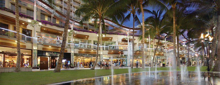 5つのホテルとタイムシェア施設が隣接するワイキキ・ビーチ・ウォーク。朝早くから夜遅くまで、安全にハワイステイを楽しむことができます。
