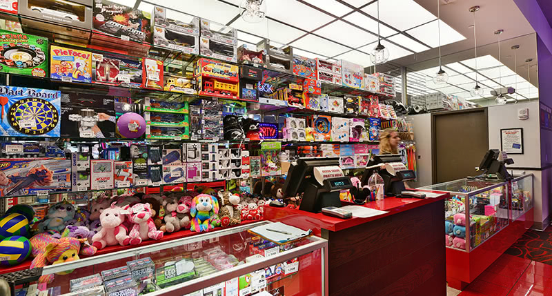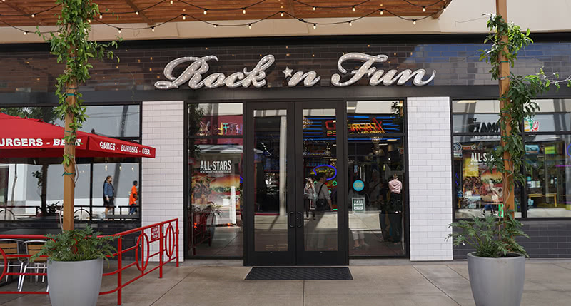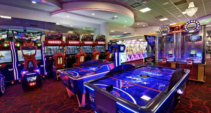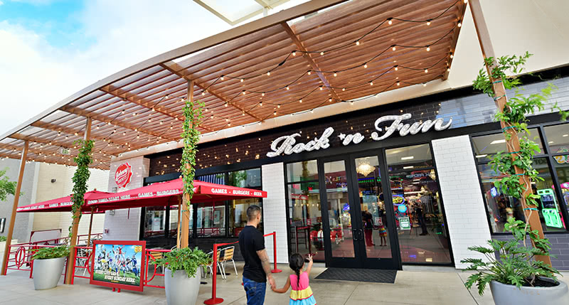 ゲームセンターとジョニー・ロケット(レストラン)が一緒になった家族で楽しめるスポット。ハンバーガーを食べてゲームを楽しみ、お父さんはビールで乾杯。