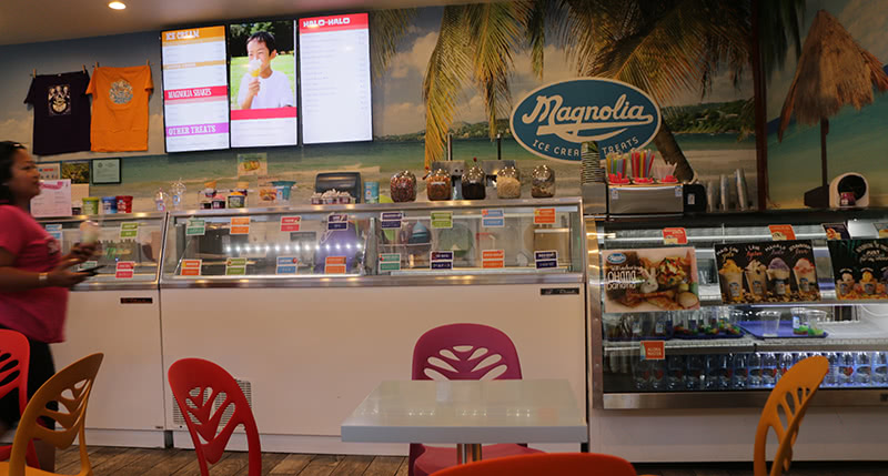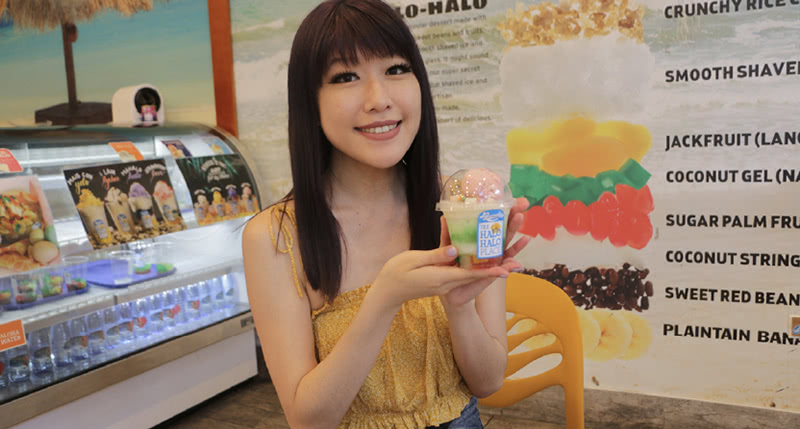 アイスクリームとトロピカルフルーツなど9種類が入った話題のコールドスイーツ、「ハロハロ」を食べられるお店。珍しい風味のアイスも食べられます。