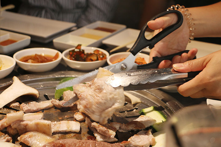 例えば、このようにハサミが一緒に出てきてお肉をチョキチョキと切ってレタスに挟んで食べたり…