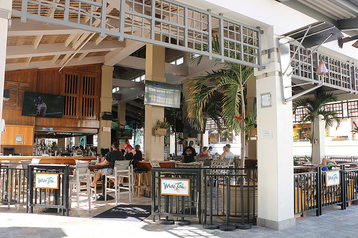 アメリカン、日本食、中華、韓国料理、ベトナム、バーなど各国の美味しいものが食べられるので、お腹がすいたらここへ行けばまず安心です! 最上階なのでテラス席に座るとビーチが見える席もあり、ハワイの風を感じながら気持ちよくお食事が出来るのも良いですね。