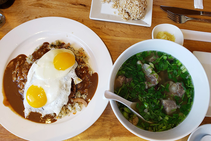 編集部員のおすすめはロコモコ($13.50、多くの人がオーダーしていました!)とオックステールスープ($17.99)。
