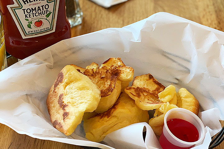 下の写真はアラカルトを一品オーダーするとついてくるバタートースト。ふわっカリッとしていて美味なんです。筆者はこのパンが楽しみでお店に行ってます。このパンはベーカリーショップでも購入可能。