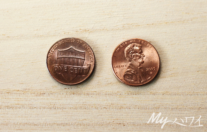 まずは1セントこと「ペニー」。4種類のコインの中で唯一ブロンズなので覚えやすいです。