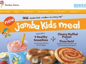 ■100%のフルーツスムージーとフードがセットに! ワイキキ・トレードセンター、ワードセンターズ、アラモアナのウォルマート、カハラモールなどに店舗があり、スムージーなどで人気の「ジャンパジュース」で、小さな子どもがいる家族にうれしいキッズミールが登場しました。 キッズミールは、4種類のスムージーと2種類のフードメニューから選べるセット。スムージーはベリーやマンゴー、バナナなど果実100%でミックスしたものが揃い、カロリー控えめでビタミンも豊富なメニューがラインナップ。これに、全粒粉で作ったチーズプレッツェルまたはピザスウォールがプラスされて、ちょっとしたおやつにピッタリです。 詳しいメニューはこちらのページをご覧ください。 |