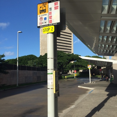 家からこの11番のバスが出ているアラパイトランジットセンター(ダウンタウンのクリスマスツリーがあるところの隣あたり)までは歩くと15分と出ていたので、そこまでは自転車で行き、自転車置き場があるのでそこに停めて、行ってきましたよ♡