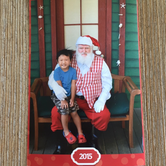 サンタさんに抱っこされて、でもややビビってる感じで、会話もできてない感じでした。
