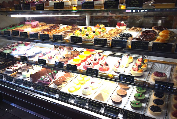 友人はJJビストロは初めてで、まずお店のショーケースにあるケーキに釘付け。テンションが最高潮まであがりました。ここのケーキはどれも絶品です。日本の方には少し甘いかもしれませんけどね。