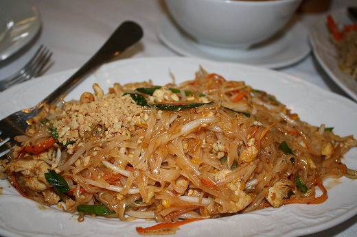 上品で酸っぱ辛いスープには、しっかりとコクがあり具もたっぷり。最後の一滴までいただけますよ。 次は、これまたタイ料理には欠かせないパッタイ(タイ風ヌードル)。 ここのパッタイには酸味があって、甘酸っぱい独特の風味が楽しめます。 お肉はチキンをチョイス!