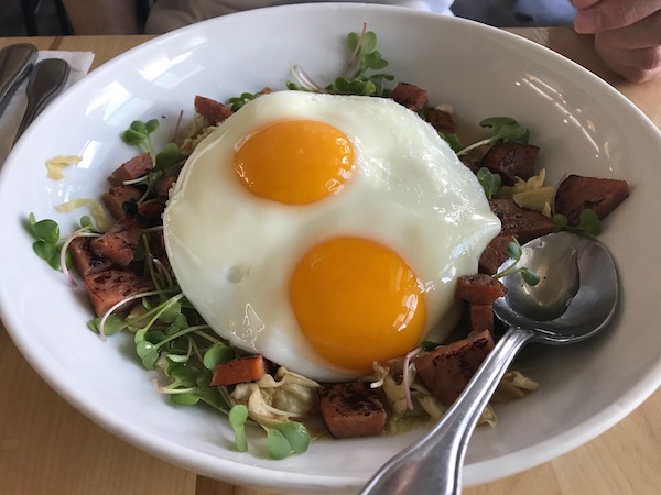 いつもならホールフーズでスープになるところですが、せっかくなので、「卵料理がおいしいレストランがあるよ」とカイルアに住んでいる友達が教えてくれた「OverEasy」というお店に行ってみることにしました。