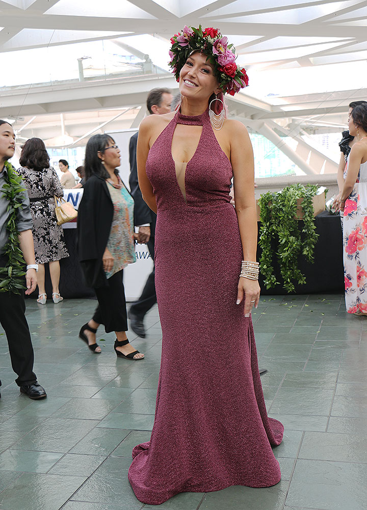 さらに、歌姫たちのうっとりするような美しいドレス姿やカラフルなアロハウェアからも目が離せません! もちろん観客として参加する人たちもドレスアップして来ています。それでは、カクテルレセプションで撮影した一部のスターたちをご紹介しましょう(敬称は省略)。