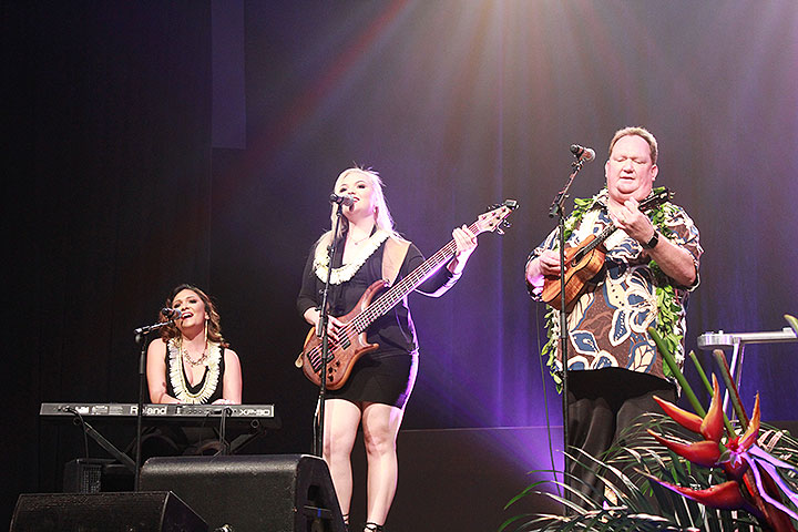 ハワイ音楽界の歌姫、ナタリー・アイ・カマウウ(中央)。