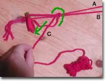 5. 写真3のように、CをAとBを巻き込んだループの中に通し、きゅっとしめます。