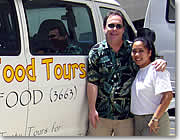 ハワイの人々が愛して止まないローカル・フードを楽しむ「ホール・イン・ザ・ウォール・ツアー」。英語で「Hole in the wall」とは「見た目は小ぢんまりしているが、料理は美味しい店」の意。約半日で4〜5つのレストランを回るという、食いしん坊には嬉しいツアーです。曜日によってお店は若干変更される場合があります。ピックアップは朝10時頃、各ホテルまでバンが来てくれます。ガイドはマシューと、ガールフレンドのキーラ。参加者の人数は通常8名前後ということもあり、とてもアットホームな雰囲気でのツアーです。 |