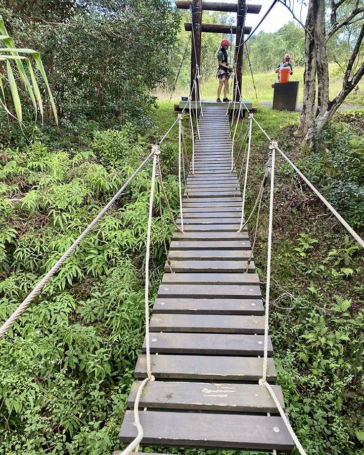 全部で7つのジップラインのプラットフォーム(乗り降り口)があり、その間は軽いハイキングが出来る距離となっています。今回私の一番のお気に入りは道沿いに咲き乱れるハワイの在来植物で、そこには人々が植物の由来について学べるような説明がついていることです。ツアーに参加する人々やハワイ以外の場所からきている旅行者が重要なハワイアンカルチャーの一部を学ぶことができる良いアイデアだと思いました。