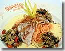 またグリル料理とともにおすすめなのが、地元産の朝摘み野菜やハーブをたっぷり使った、とってもフレッシュなサラダ類。噛み締めるほどに野菜本来の持つナチュラルなおいしさが、口一杯に広がっていきます。そして忘れてならないのがワインセレクションの充実振り。ヨーロッパ各地、カリフォルニア、南米、ニュージーランドなどワイン好きにはたまらない、世界各地のさまざまな銘柄がリーズナブルなプライスで楽しめます。 アペタイザー、サラダ、アントレとボリューム満点の料理を平らげた後ではきっとお腹が一杯になってしまうと思いますが、食後には、滑らかな舌触りのジェラートやシャーベット、チーズケーキ、アップルパイ、チョコレート・ケーキなどおいしいメニューがズラリと揃った自慢のホームメイド・デザートもお忘れなく! (2001年8月取材)
