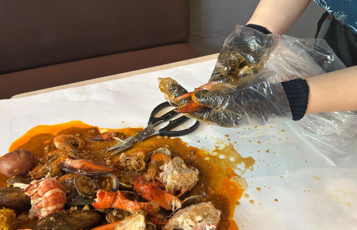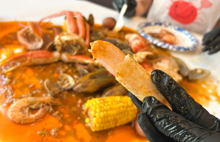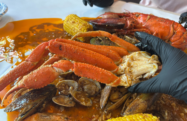 様々なコンボメニュー(複数のシーフードが組み合わされたセット)から好みのものを選び、次に辛さが選べる旨味たっぷりのソースをチョイス。自分好みにカスタマイズできるスタイルが大人気なんです。