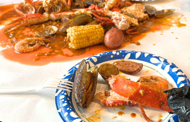 さらに、このお店ならではの魅力が “手づかみで食べるスタイル”。豪快にクラブやシュリンプを手でつかんで食べるのは、まさにアメリカンカルチャーを体験できるユニークなポイントです。とはいえ「そのまま手づかみはちょっと…」という方もご安心ください。スタッフにお願いすれば、とり皿やフォークを用意してくれるので、食べやすいスタイルで楽しめます。