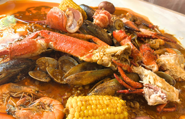 様々なコンボメニュー(複数のシーフードを組み合わせたセット)の中から好みのものを選ぶことができます。ボリューム満点のシーフードコンボは、みんなでシェアできるスタイルなので、友人や家族との食事にもぴったり。