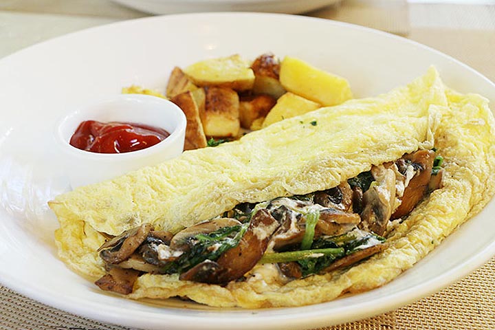 ハワイでパンケーキ、エッグベネディクトと並ぶ朝食メニューの定番、オムレツ! 日本と違い、アメリカのオムレツは具もボリュームもたっぷりです。各店、具の種類や卵の焼き加減など特徴がさまざま。付け合わせには焼きポテトが付いていることが多いですが、中にはチャーハンをオプションで提供しているお店も!
