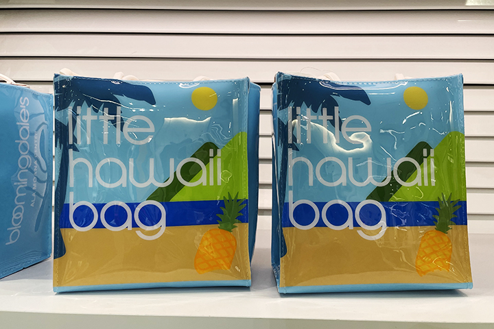 ハワイの主要な島、オアフ島、ハワイ島、マウイ島、カウアイ島それぞれをイメージしたエコバッグ。こちらも同じデザインで、チャックが付いた保冷バッグタイプ(写真右)があります。