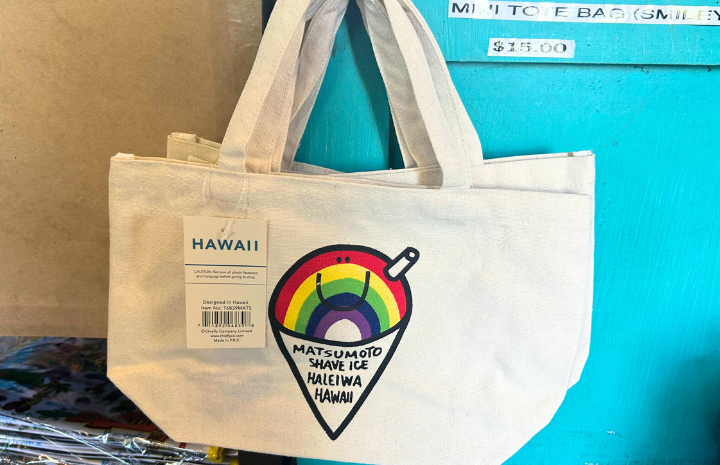 オアフ島ノースショアの名物の一つ、マツモト・シェイブアイス。連日、観光客でお店の前に長蛇の列が出来ている超人気店! グッズもたくさん販売されていて、お土産に買って行く人も多いようです。