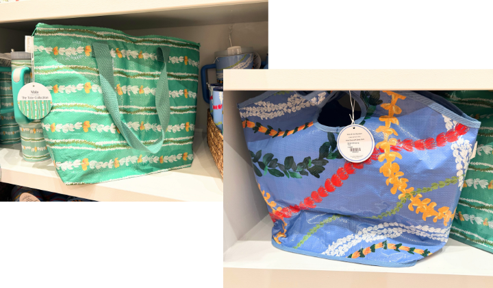 オアフ島東部カイルア発のオーガニックブランド、「タグ・アロハ(Tag Aloha Co.)」とコラボしたトートバッグ。トロピカルな雰囲気の植物やパイナップルなど、ハワイらしいプリントで人気があります。