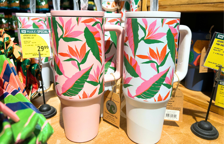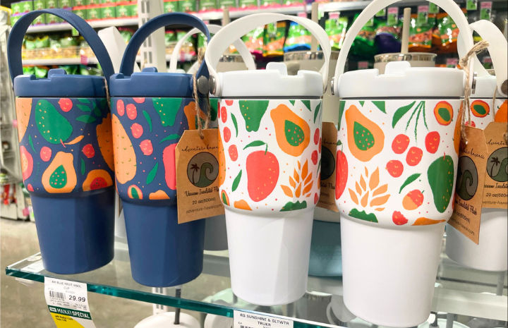 アラモアナセンターに入るハワイの老舗スーパー「フードランド ファームズ」でも、ハワイらしいプリントのタンブラーが販売されています。