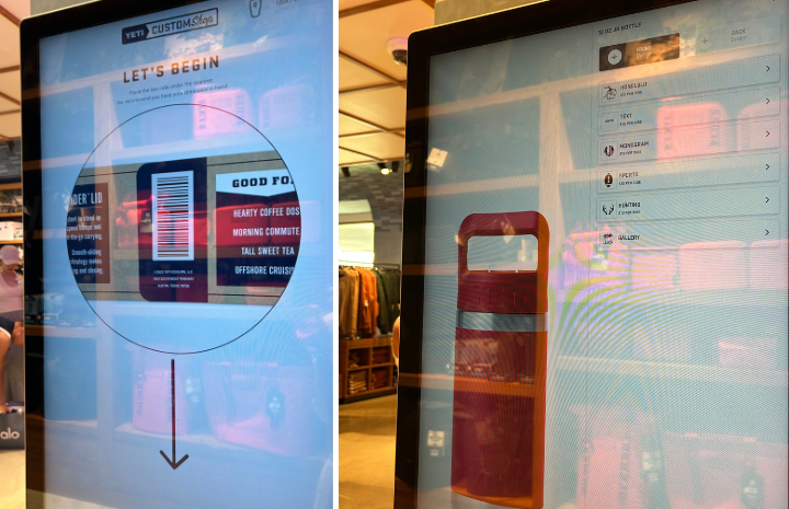 YETIのボトルやマグは、好きな文字やデザインを入れてカスタマイズすることができます。 商品を選んだら、店内に設置された専用パネルで商品のバーコードをスキャンし、カスタマイズをスタート。表面と裏面それぞれに異なるデザインを施すことも可能です。費用は、1プリントにつき追加$10。「Text」を選んで名入れをしたり、ハワイ限定のプリントを選ぶのも人気のカスタマイズ方法です。