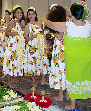 | 2008年11月13日(木)から11月15日(土)の3日間にわたり、ホノルルのハワイ・コンベンションセンターで「第2回インターナショナル・ワイキキ・フラ・カンファレンス」が行われます。主催はワイキキ・インプルーブメント・アソシエーションで、昨年に引き続き今年で2回目となります。この催しはフラの「学会」で、フラ生誕の地ハワイの有名なクムフラ(フラの指導者)達によるフラやフラに関連する題材をテーマにした多彩なワークショップが行われます。参加者は現代フラ、古代フラ、ハワイ語、レイ・メイキング、その他クラフトのワークショップや、フラ・マスターの話が聞けるセミナーなど、128のクラスから好きなものを選んで参加することができます。また、会場内にはフラ用品を販売するブースも並びます。参加予定のクムフラは42名。カリスマ的存在のコディー・プエオ・パタやエイプリル・チョック、ポーハイ・スーザの各クムフラも初参加の予定です。クムや世界中からの参加者との交流が楽しめるプログラムが目白押し。申込みはインターナショナル・ワイキキ・フラ・カンファレンスのウェブサイトをご参照ください。先着1000名までですので、お早めに。 | |