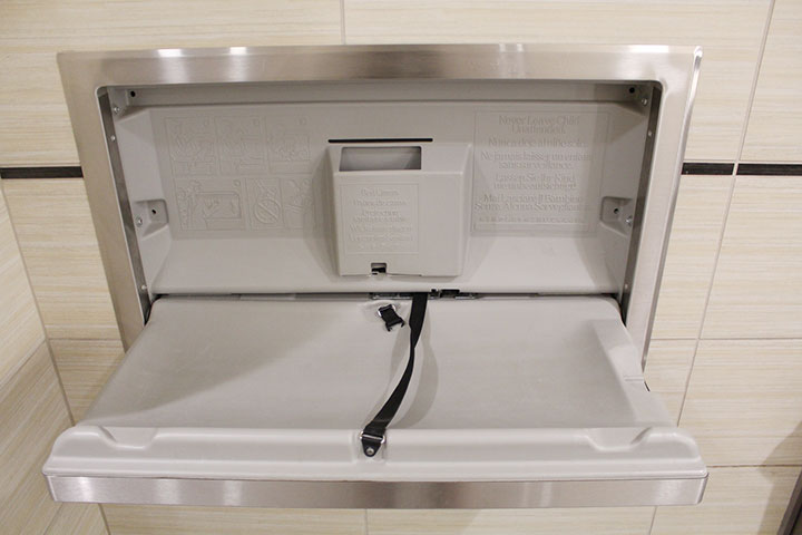面積が広いトイレのほとんどにはオムツ替えのできるスペースが備わっています。