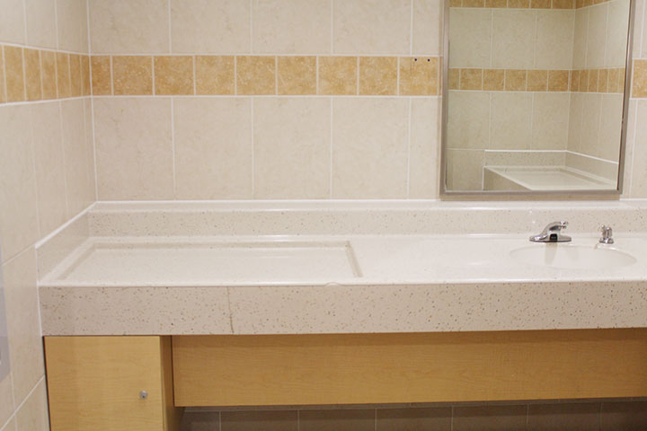 赤ちゃんが台から転がって落ちたなどという事故を未然に防ぐためか、オムツ替えスペースがこのように窪んでいるので安心です。