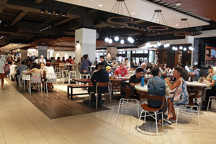 Aウィング1階、海側にある「マカイマーケット」には、ローカルフード、和食、中華、タイ、韓国、イタリアン、アメリカンなど様々なジャンルの料理を提供する店が30店舗以上集まっています。