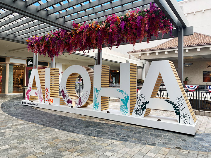 センターステージ上部の3階、二ーマンマーカス前にはALOHAの文字を形どった「セルフィーステーション」が登場しています。素敵な写真を撮影して #alohaalamoana のハッシュタグとともにぜひ投稿してみてくださいね。
