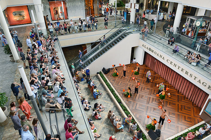 アラモアナセンター1階のセンターステージでは、毎日午後5時よりフラショーが開催されます。20分間によるこちらのショーでは、古典フラ(カヒコ)と現代フラの両方を鑑賞することができます。日曜日にはケイキフラショーも開催されます。可愛い子どもたちのフラダンスをぜひお見逃しなく!