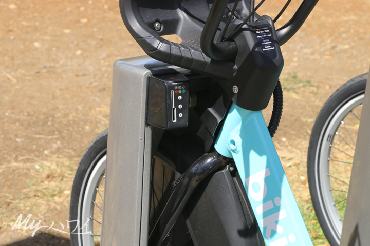 番号を打ち込んで、黄色のボタンが緑になったら、自転車を出しましょう。引っ張るのにちょっと力が要るので気をつけてくださいね。さあ、今度はbikiに乗ってみましょう。