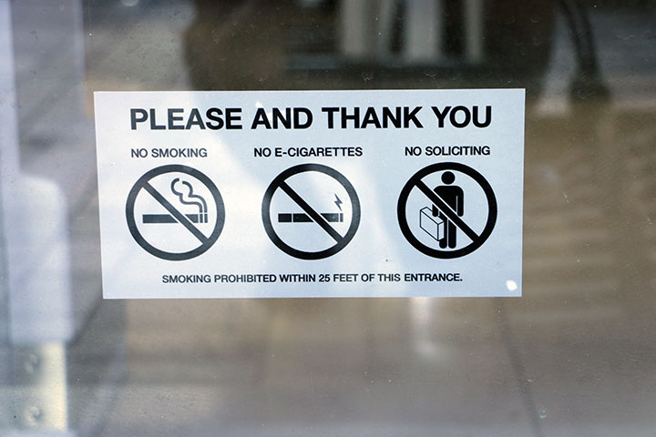 州法によりタバコ店を除くすべてのショップ(食品、雑貨、洋服などすべてを含む)においての喫煙が禁じられています。