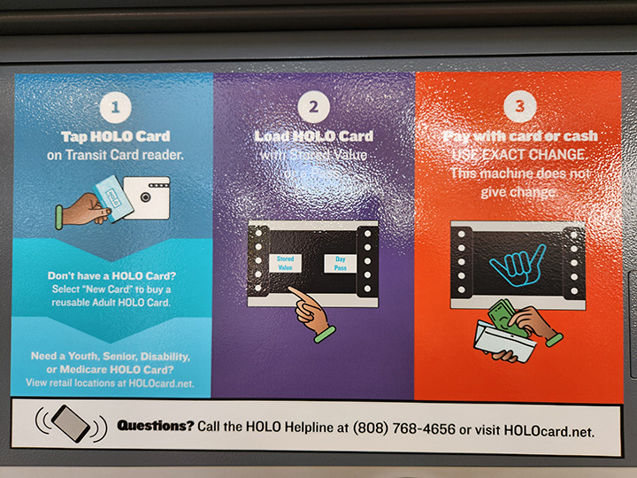 スカイラインの乗車にはザ・バスで使用するものと同じ「ホロカード」の購入が必要。ホロカードはABCストア、フードランド、タイムスなど、もよりのスーパーで購入可能。