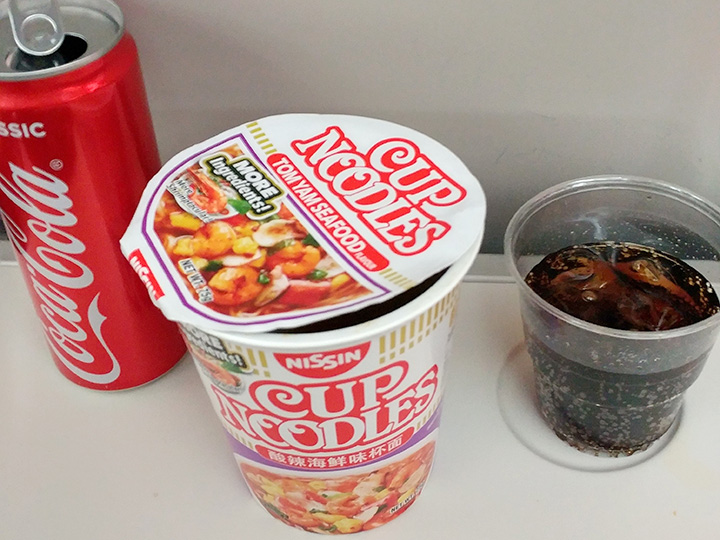 帰りのフライトではカップラーメンのトムヤムクン味を買いましたが、おいしかったです。ただ、辛いので飲み物も一緒に買うのをおすすめします。