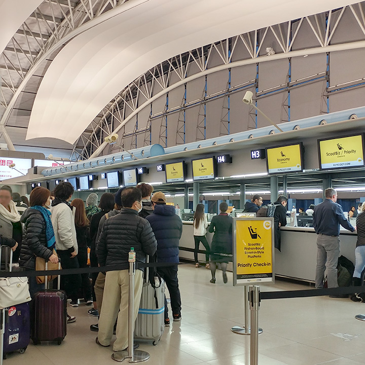チェックインカウンターは、Agriculture Inspection(農産物検査)の横、チャイナエアラインのカウンター前に数個ある簡易のカウンターで行われました。この日は、空港が混雑していてチェックインに45分くらいかかったので、空港でゆっくりしたり免税店を見たい人は2時間前以上に空港に行くことをおすすめします。