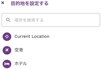 ③ 配車依頼の準備が整ったら、乗車場所を確認して検索ボックスに目的地を入力します。