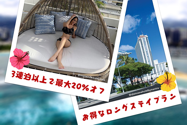 アラモアナセンターと直結していて最高に便利なアラモアナ・ホテル・バイ・マントラ(以下アラモアナ・ホテル)に、3連泊以上で宿泊料金が最大20%オフになる期間限定のお得なプランが登場しました。