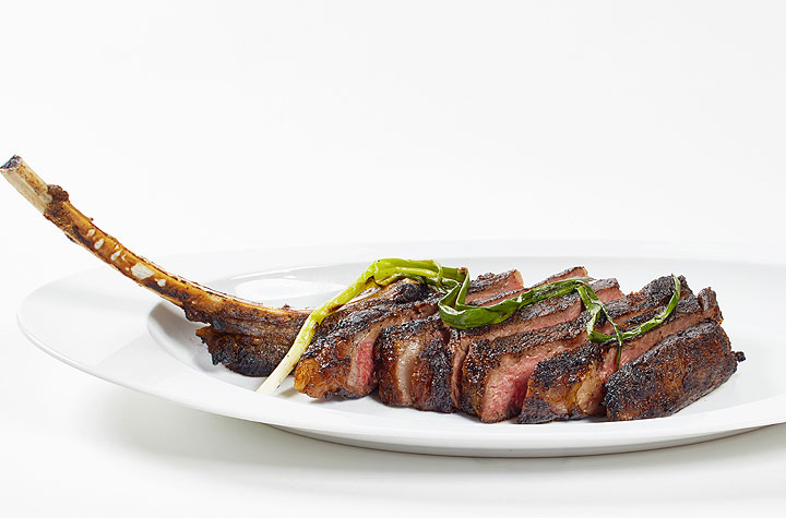 同店では食材は品質の高いものだけを使うというこだわりを徹底しています。こちらはトウモロコシで育てられた自然の肉を使用し、35日間ドライエイジド(乾燥熟成)した「トマホーク」(2人分$195)。
