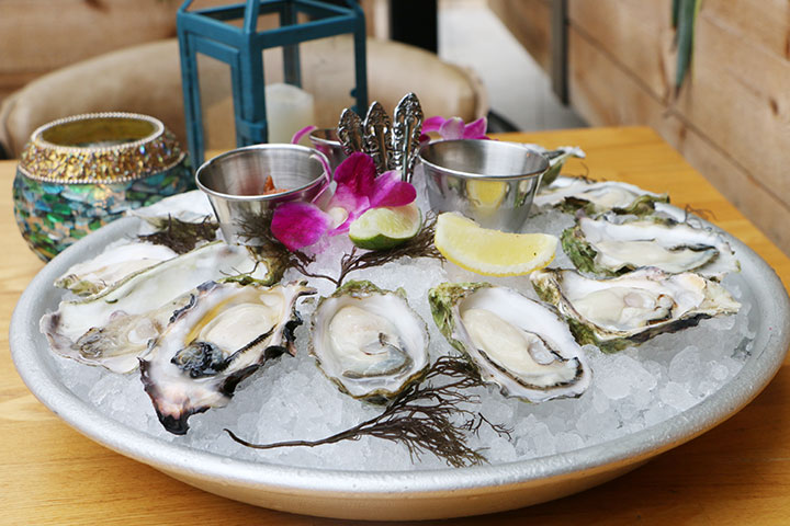 本土から空輸したカキはヘリンボーン流ハッピーアワー「オイスターアワー」の時間中(午後4~6時、9時~閉店)は半額の1個$2になります! ほかの料理やドリンクにもお得な価格になるものがありますので、ぜひ利用してくださいね。なお、ハッピーアワーはバーカウンター席のみになりますので、混む前になるべく早めに行くのがおすすめ!